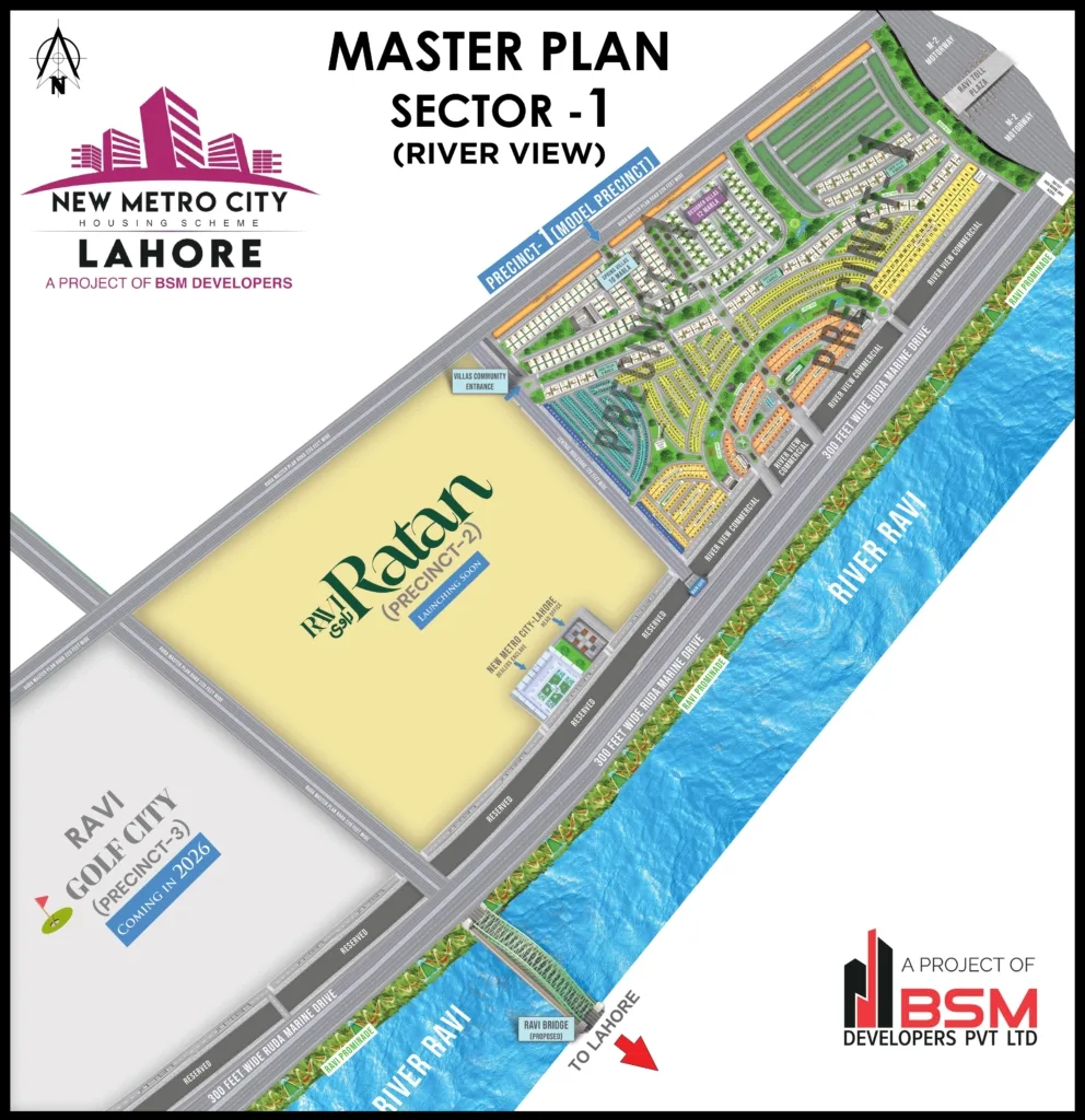 is the flagship block of New Metro City Lahore by BSM Developers. As the model precinct of the society, it offers a gated, fully planned community with wide roads, parks, a grand mosque, and modern infrastructure  all within a RUDA-approved framework.